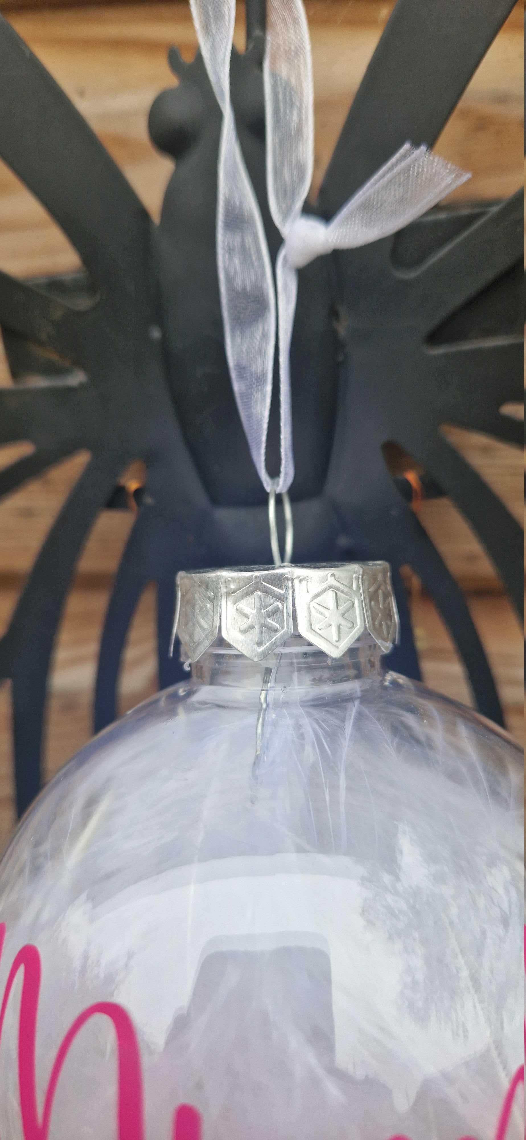 Add a touch of elegance and meaning to your festive décor with our Personalised Feather Bauble. Each clear plastic bauble is delicately filled with a soft feather and finished with a name, making it a beautiful keepsake for the tree or a heartfelt memorial ornament.