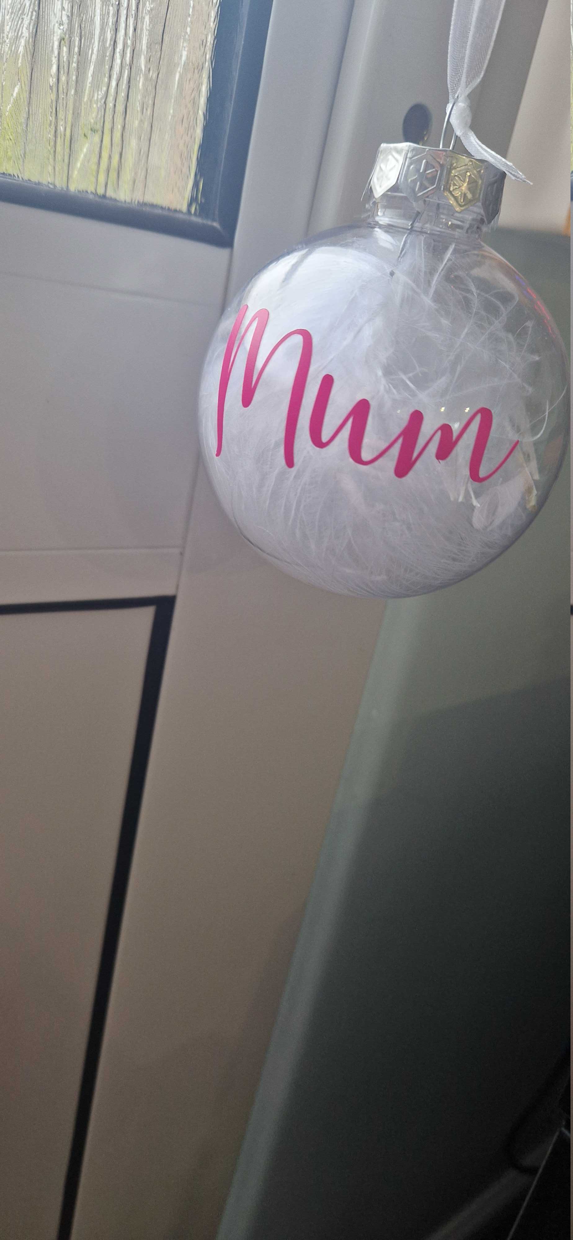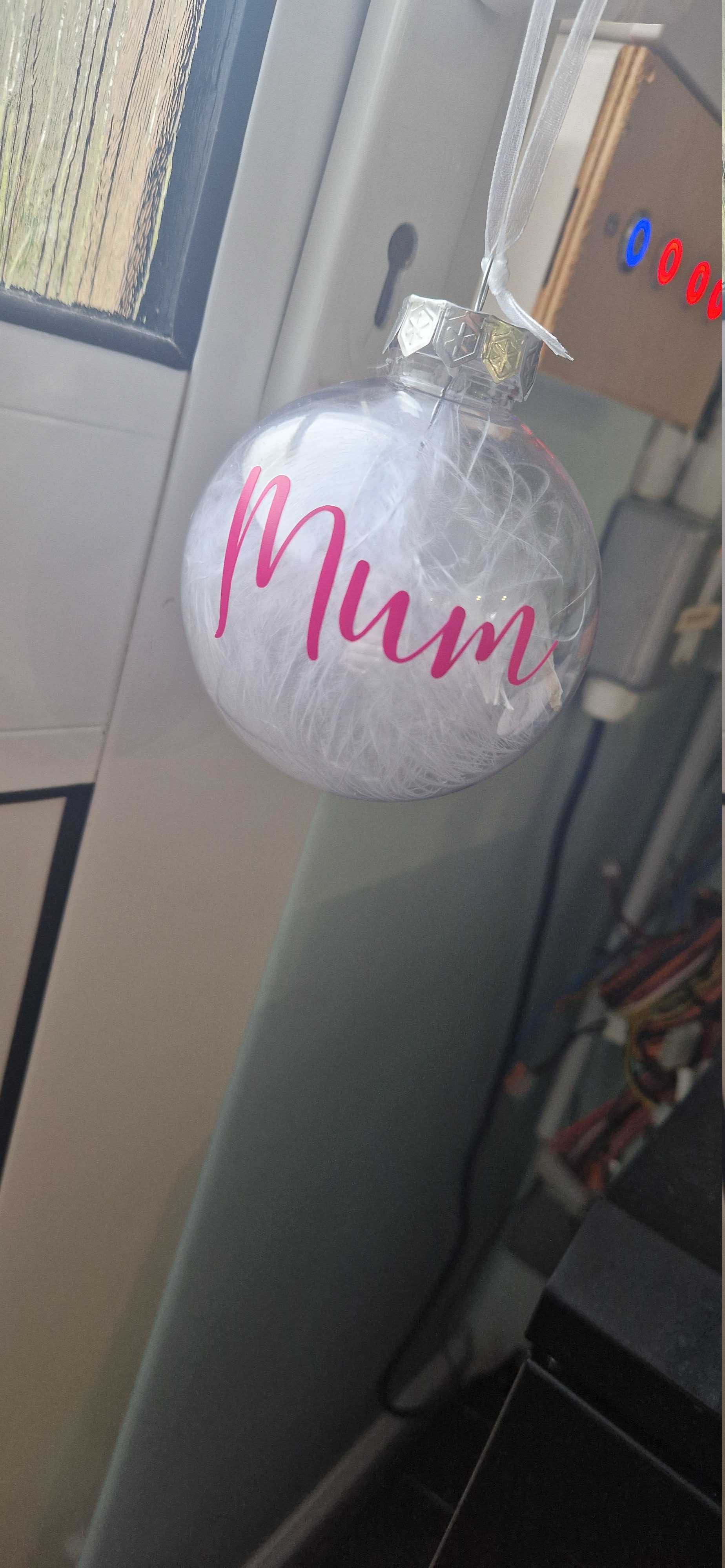Crafted from high-quality shatterproof plastic, this bauble offers the charm of glass with added durability — perfect for families, gifts, or remembrance displays.