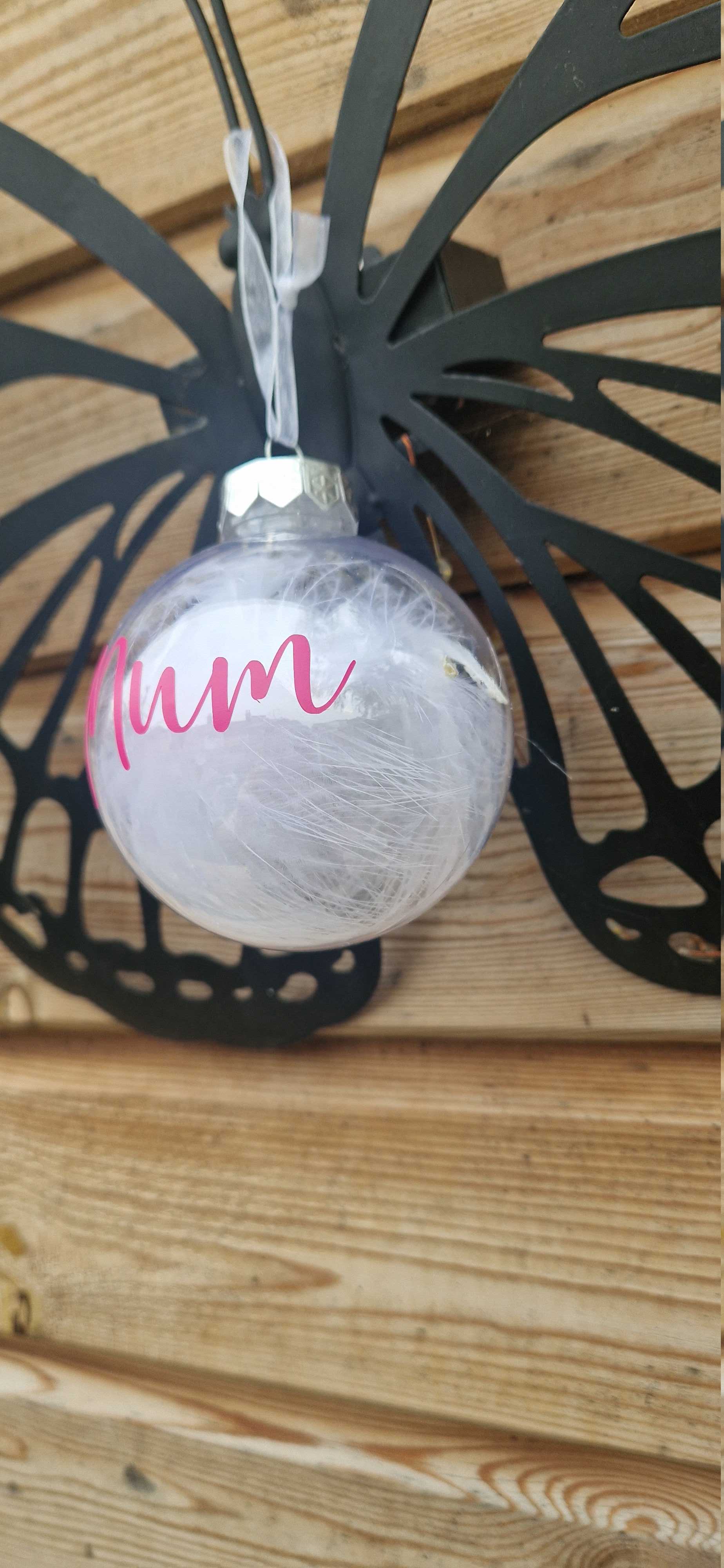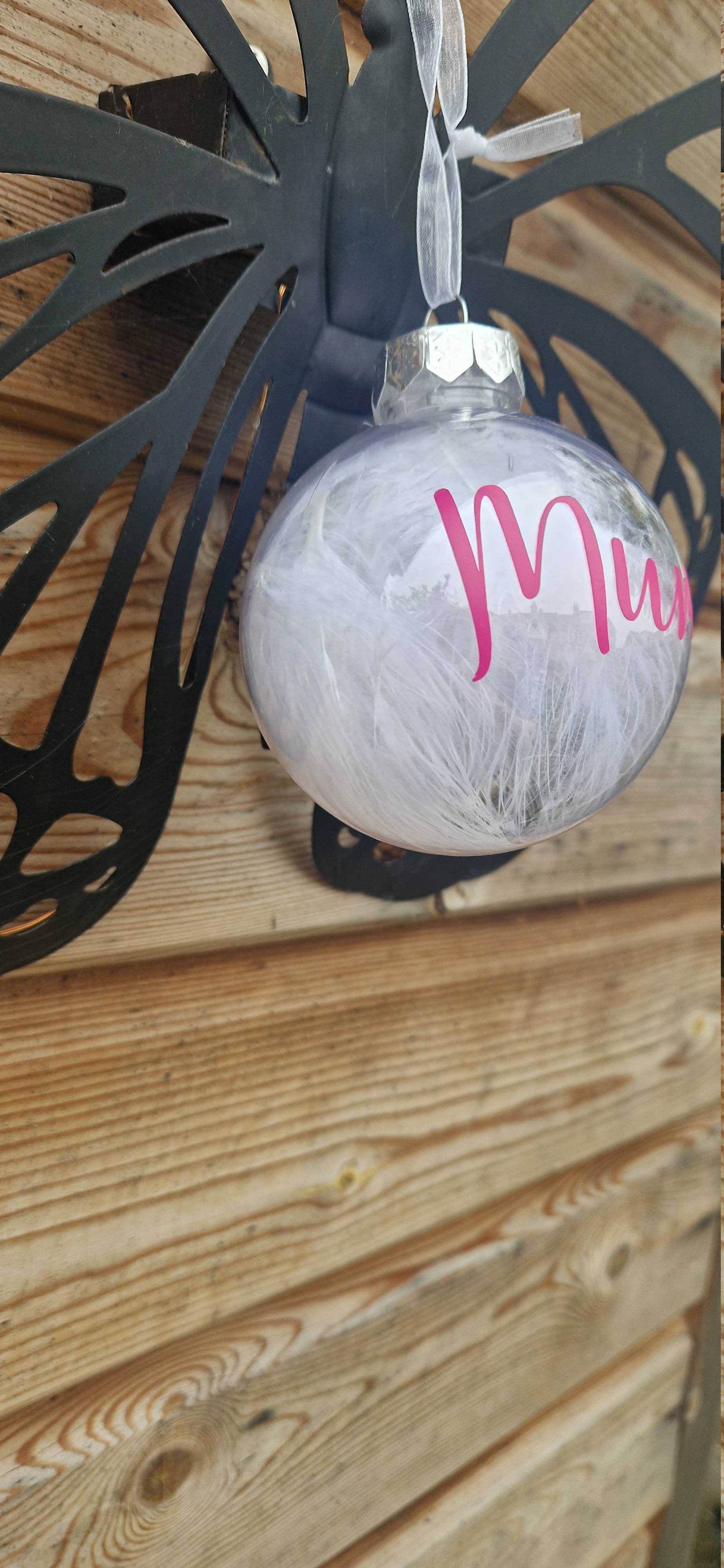 Add a touch of elegance and meaning to your festive décor with our Personalised Feather Bauble. Each clear plastic bauble is delicately filled with a soft feather and finished with a name, making it a beautiful keepsake for the tree or a heartfelt memorial ornament.